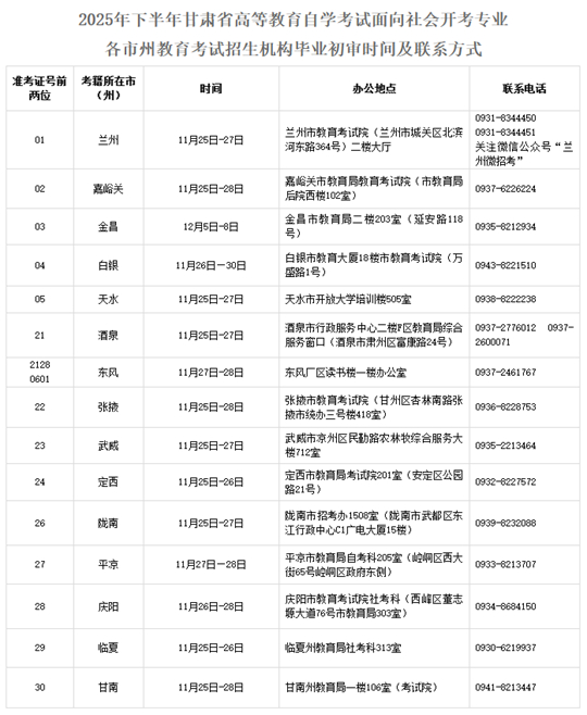| 2025年下半年甘肅省高等教育自學(xué)考試面向社會(huì)開考專業(yè)畢業(yè)初審公告 |