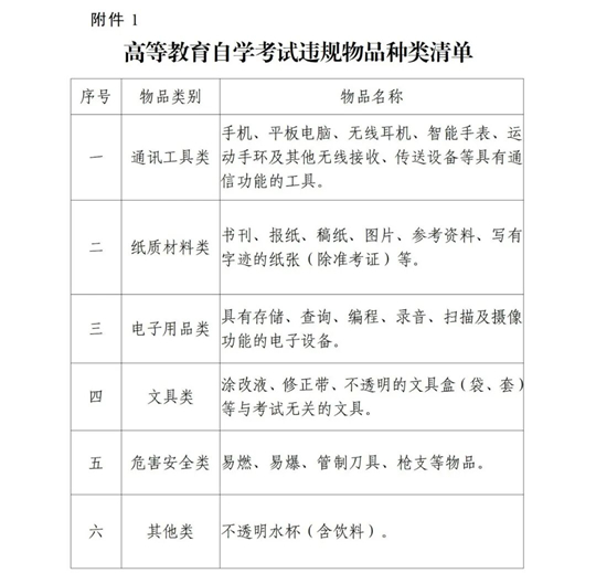 1.高等教育自學考試違規(guī)物品種類清單