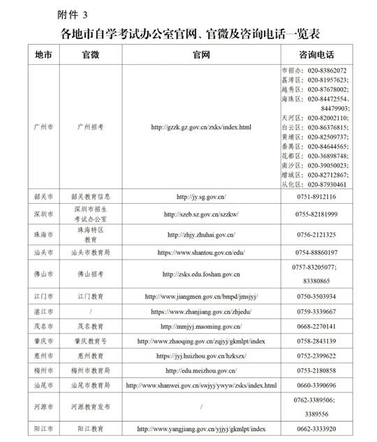 3.各地市自學考試辦公室官網(wǎng)、官微及咨詢電話一覽表