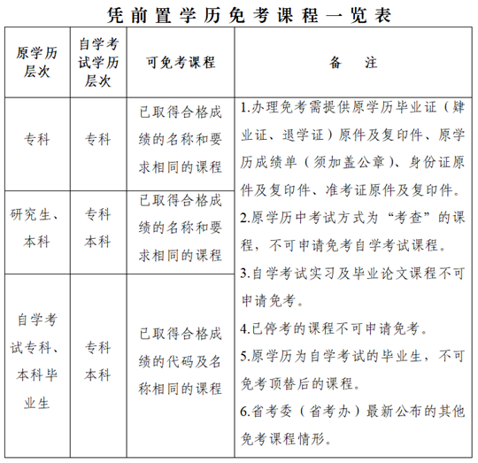 考生可憑上述前置學(xué)歷申請(qǐng)免考的自學(xué)考試課程如下: