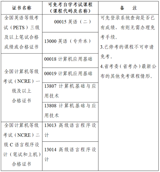 考生可憑上述證書申請(qǐng)免考的自學(xué)考試課程如下: