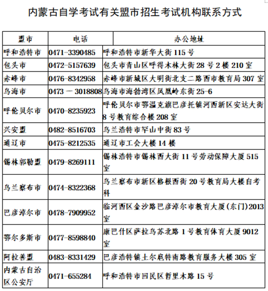 附件3:內(nèi)蒙古自學(xué)考試有關(guān)盟市招生考試機構(gòu)聯(lián)系方式